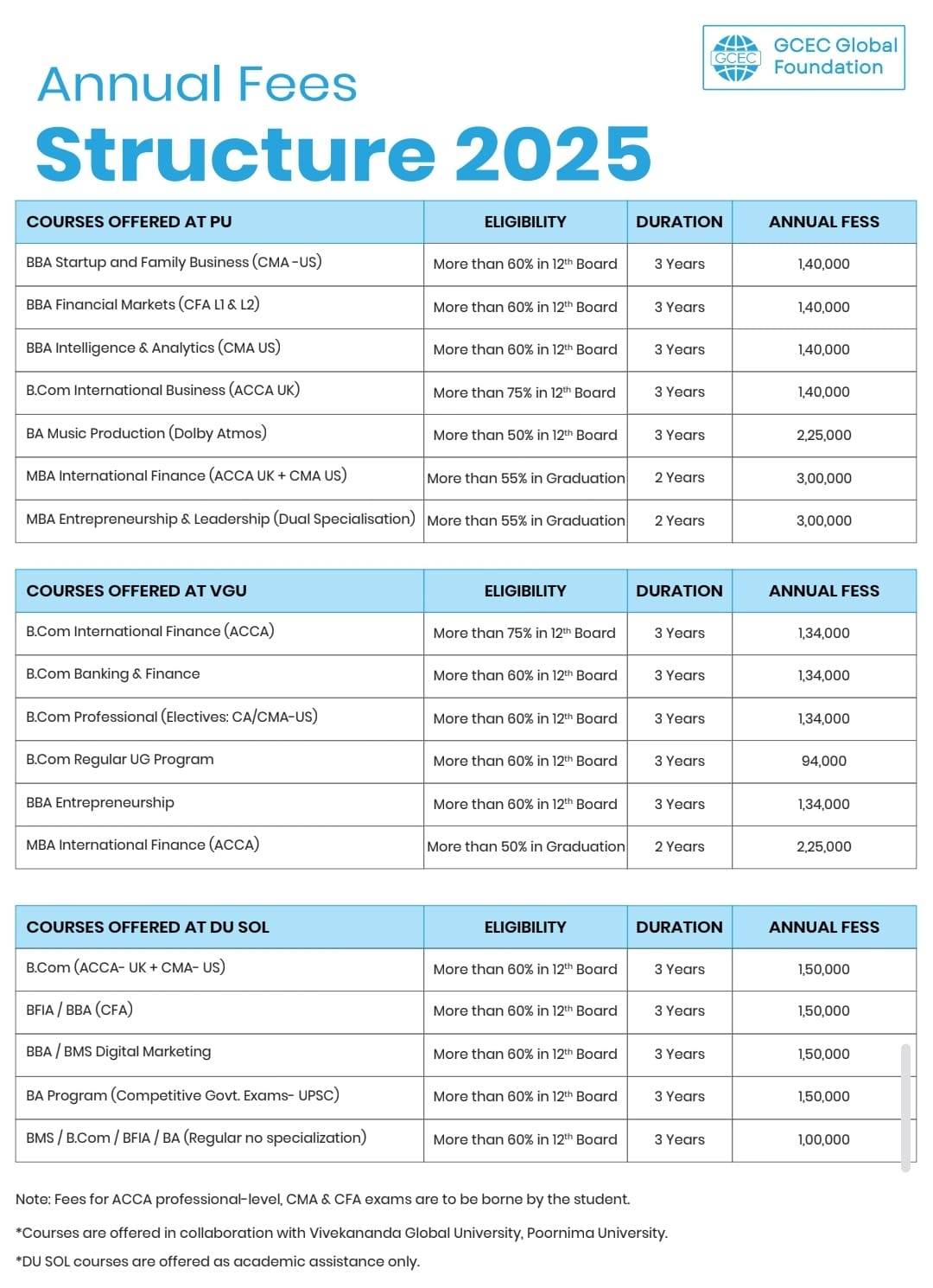 Online Fee Structure